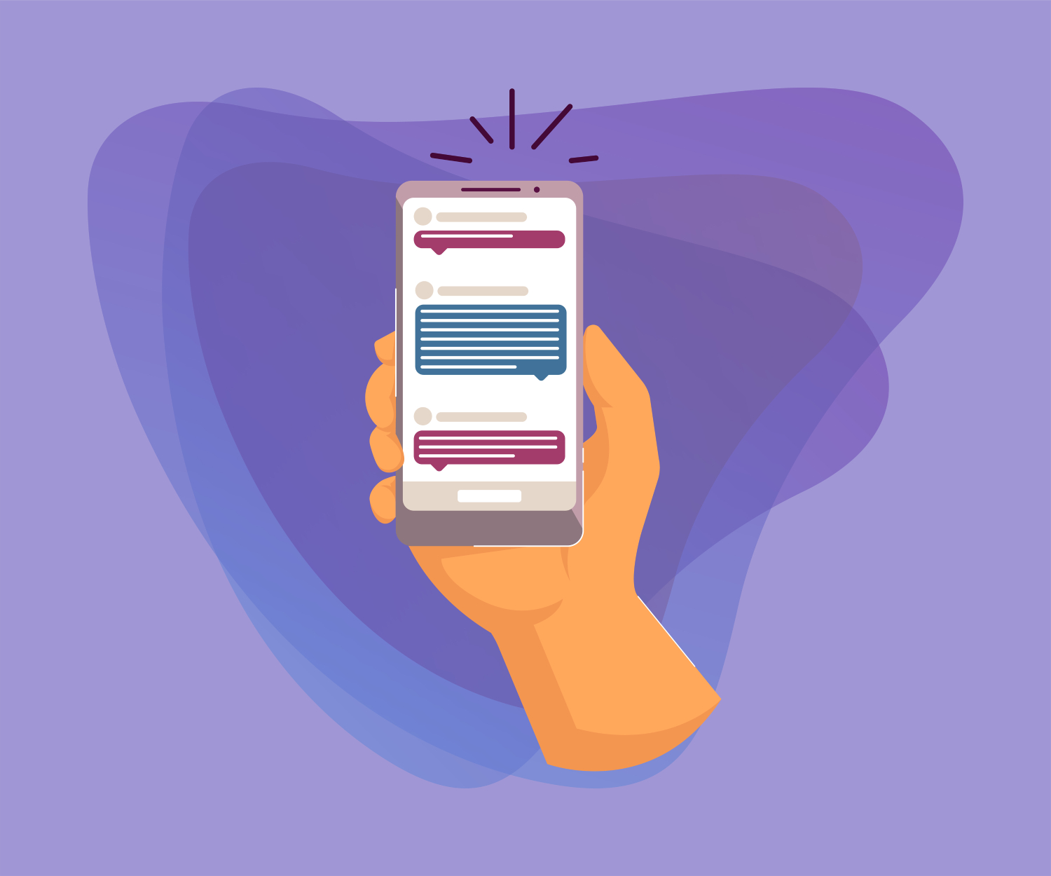 A mensagem aparece diretamente na tela do celular, de forma imediata.